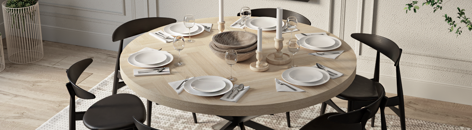 Nuestras Mesas de Comedor en Espiga combinan elegancia atemporal y durabilidad con su distintivo diseño en espiga. Fabricadas en madera maciza, constituyen un elegante centro de mesa para cualquier espacio de comedor, perfecto tanto para las comidas diarias como para las ocasiones especiales.