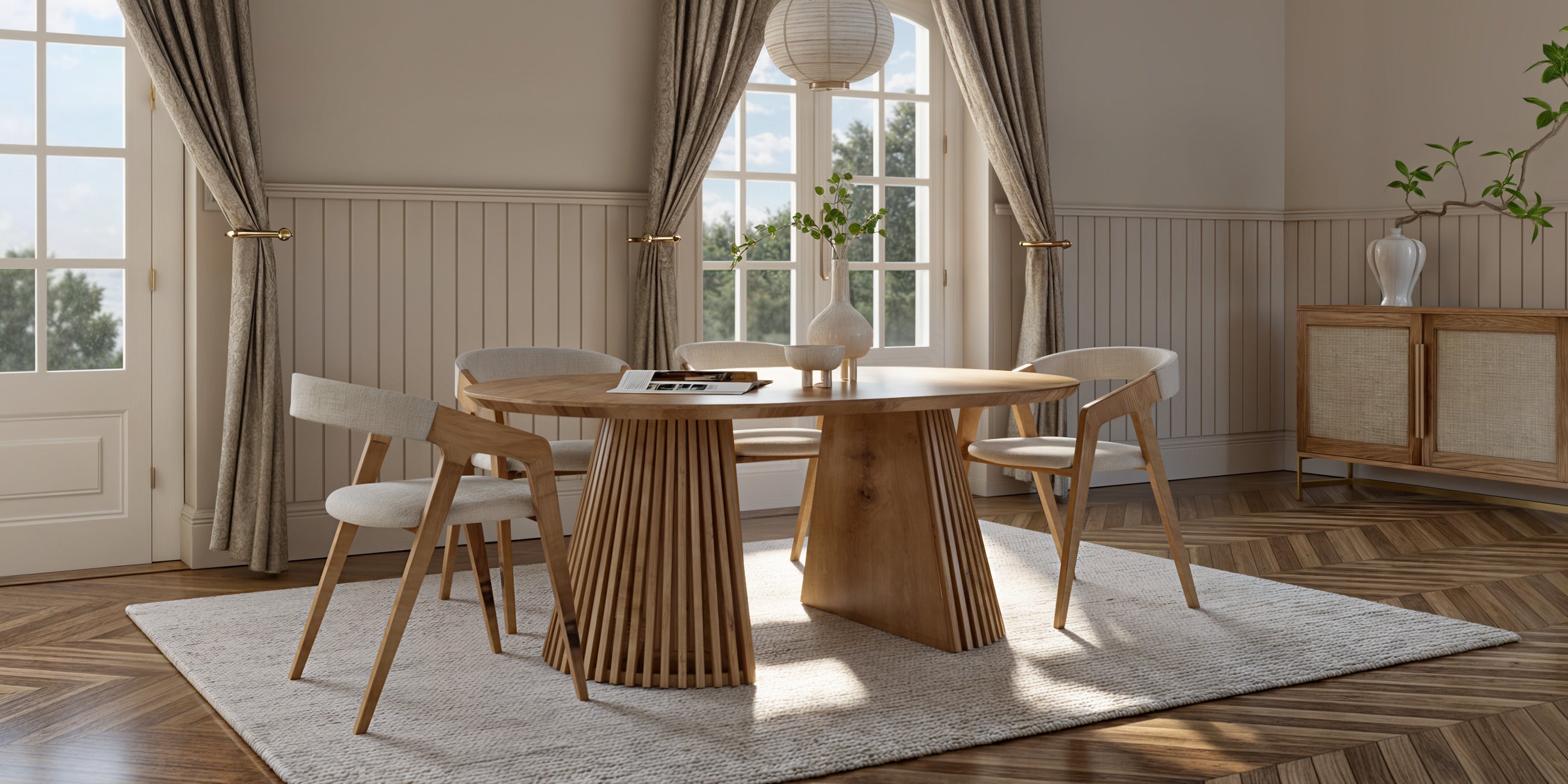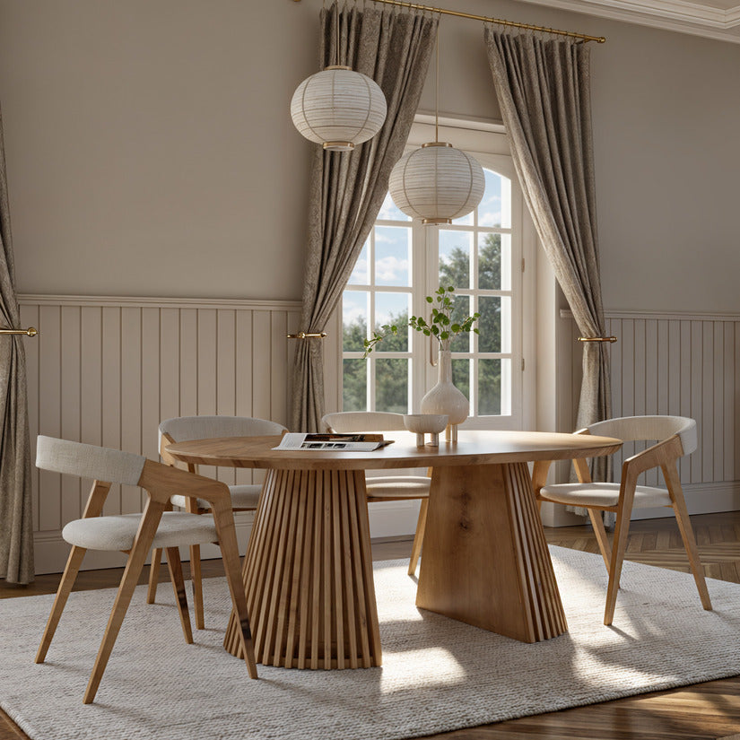 Mesa de comedor redonda de Vivien en roble de algodón