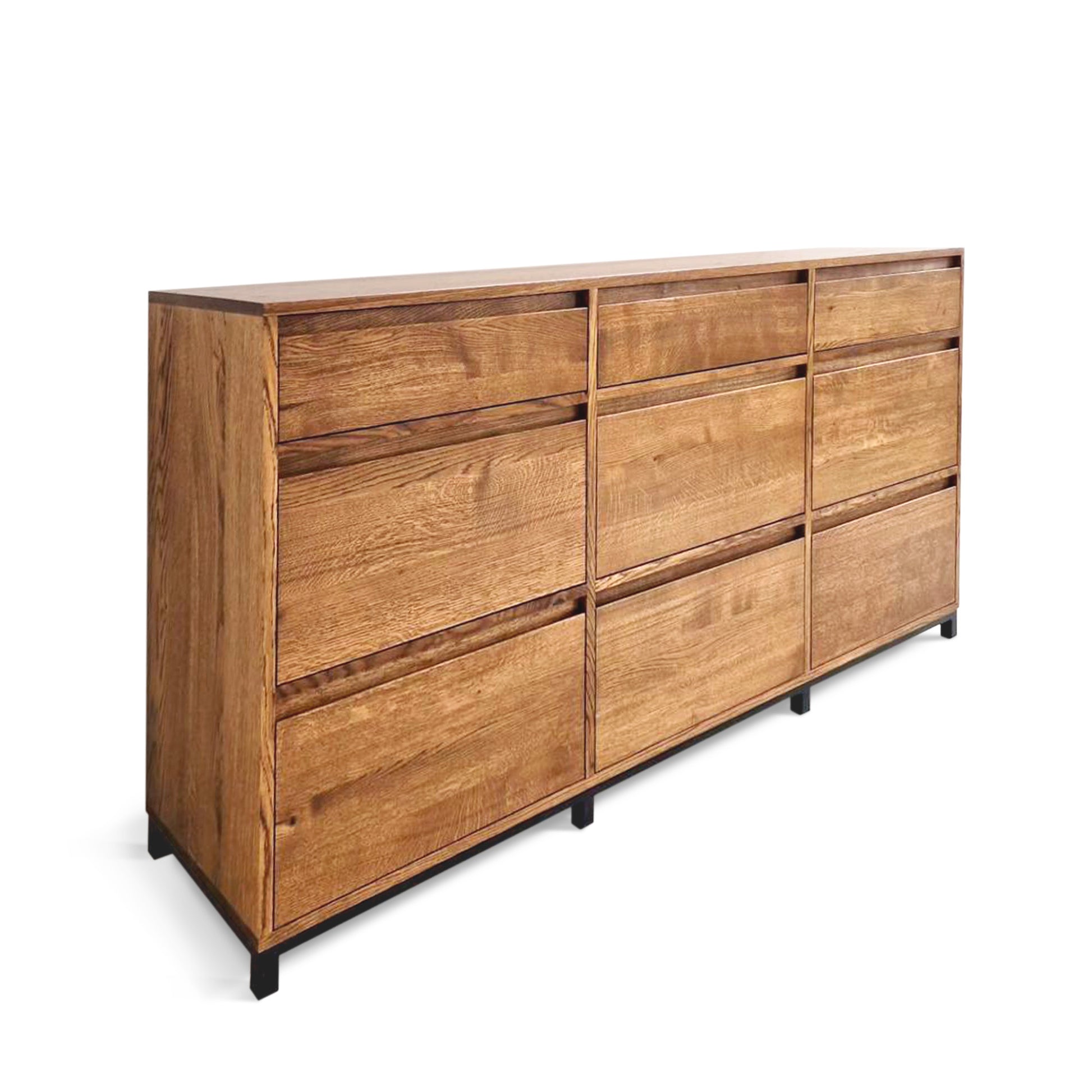 Presentando el aparador de Madelaine, una pieza de roble sólido hecha a la orden terminada con aceite de cera dura Osmo mate. Hecho a mano para la belleza y la durabilidad, presenta hardware de Blum premium para una operación suave. Disponible en dos tamaños estándar, también puede ser personalizado para adaptarse perfectamente a su espacio y estilo.